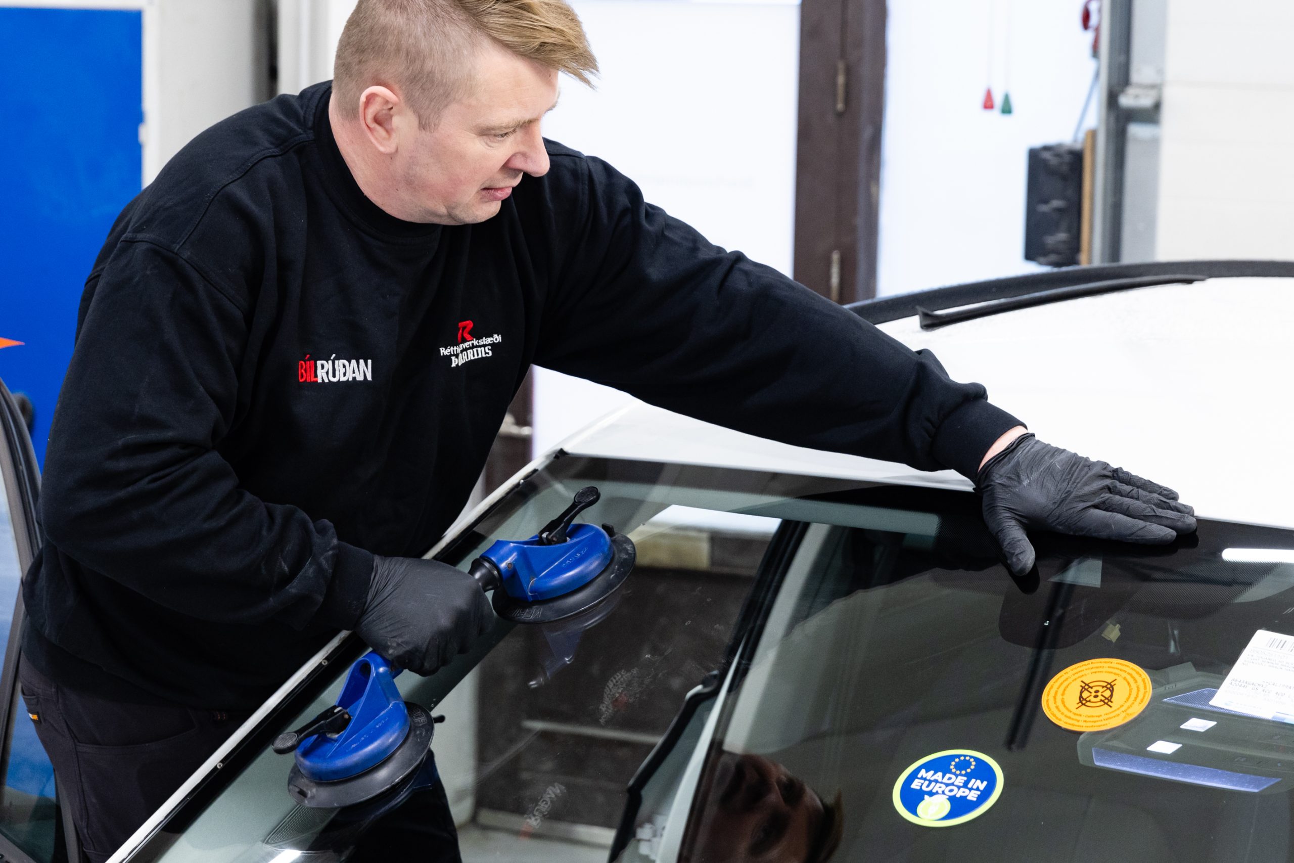 - Við skiptum út skemmdu rúðunni fyrir nýja.